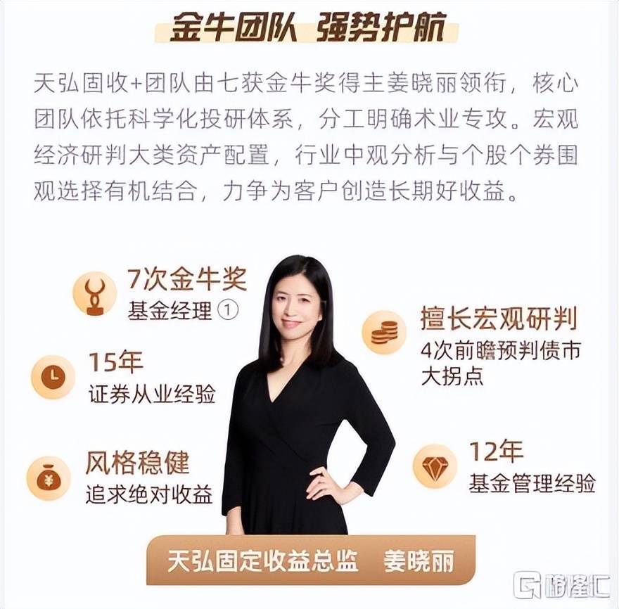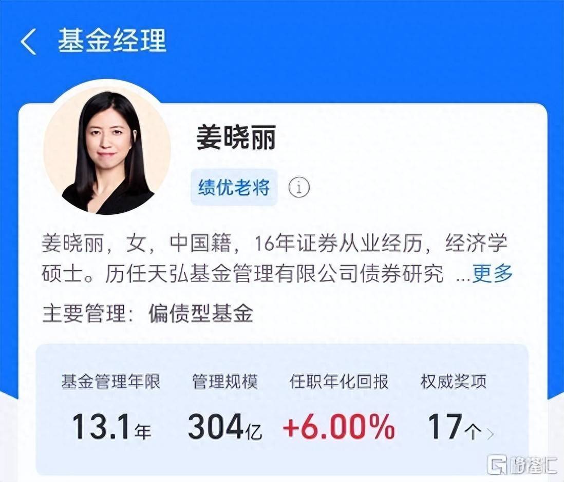 先说说基金经理姜晓丽,她是天弘安康颐养A(420009)的灵魂人物。拥有7次金牛奖的辉煌荣誉,管理天弘安康颐基金养A(420009)近 13 年,经验丰富程度不言而喻。她在债券、宏观研究等多个领域都有着深厚的积累,历任的众多职位让她对市场有着敏锐的洞察力和精准的判断力。