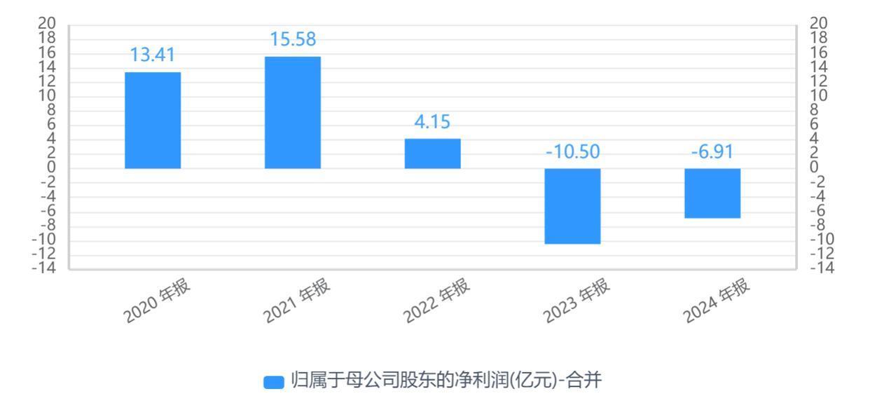 纵观近年业绩,优然牧业上市仅第二年,净利润便遭遇“断崖式”下滑,随后的连续两年更是陷入亏损困境。2020年至2024年,公司归母净利润分别为13.41亿元、15.58亿元、4.15亿元、-10.50亿元、-6.91亿元。